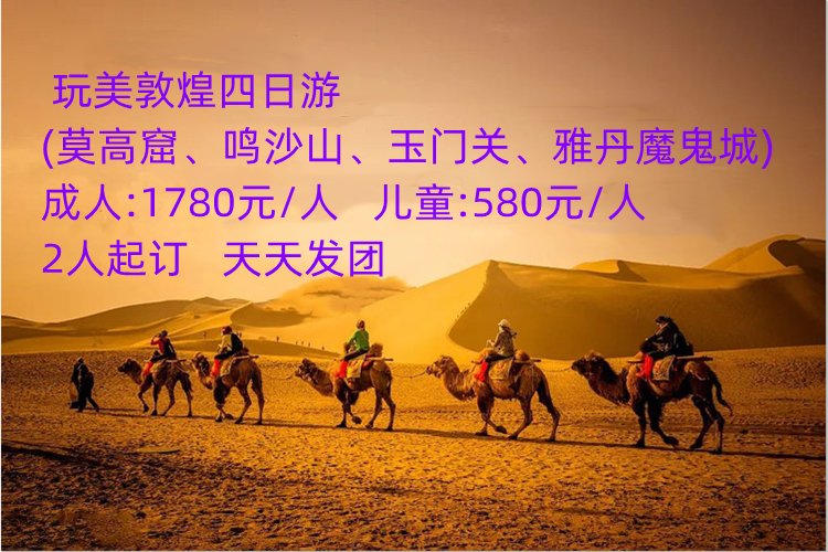 玩美敦煌:敦煌莫高窟、鸣沙山月牙泉、玉门关雅丹魔鬼城纯玩四日游敦煌莫高窟、鸣沙山月牙泉、玉门关雅丹魔鬼城纯玩四日游