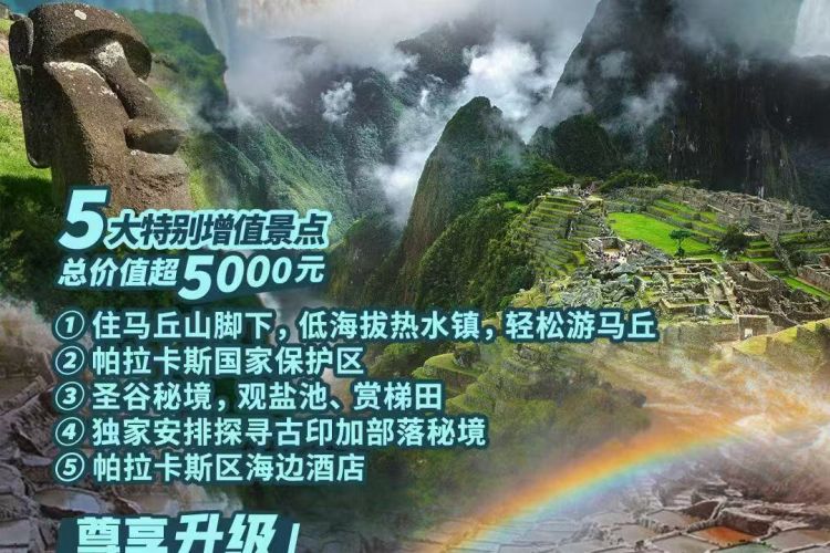 | 2、交通:前往 PISCO 路途遥远,行车时间长达数小时, 建议早餐如不晕车多吃些,午餐通常排队坐完小飞机后进行,时间比较晚。 3、治安:良好, 较安全, 不过 18:00 以后尽量不要前往老城区。 4、通讯:开通国际漫游即可接听和接打电话。